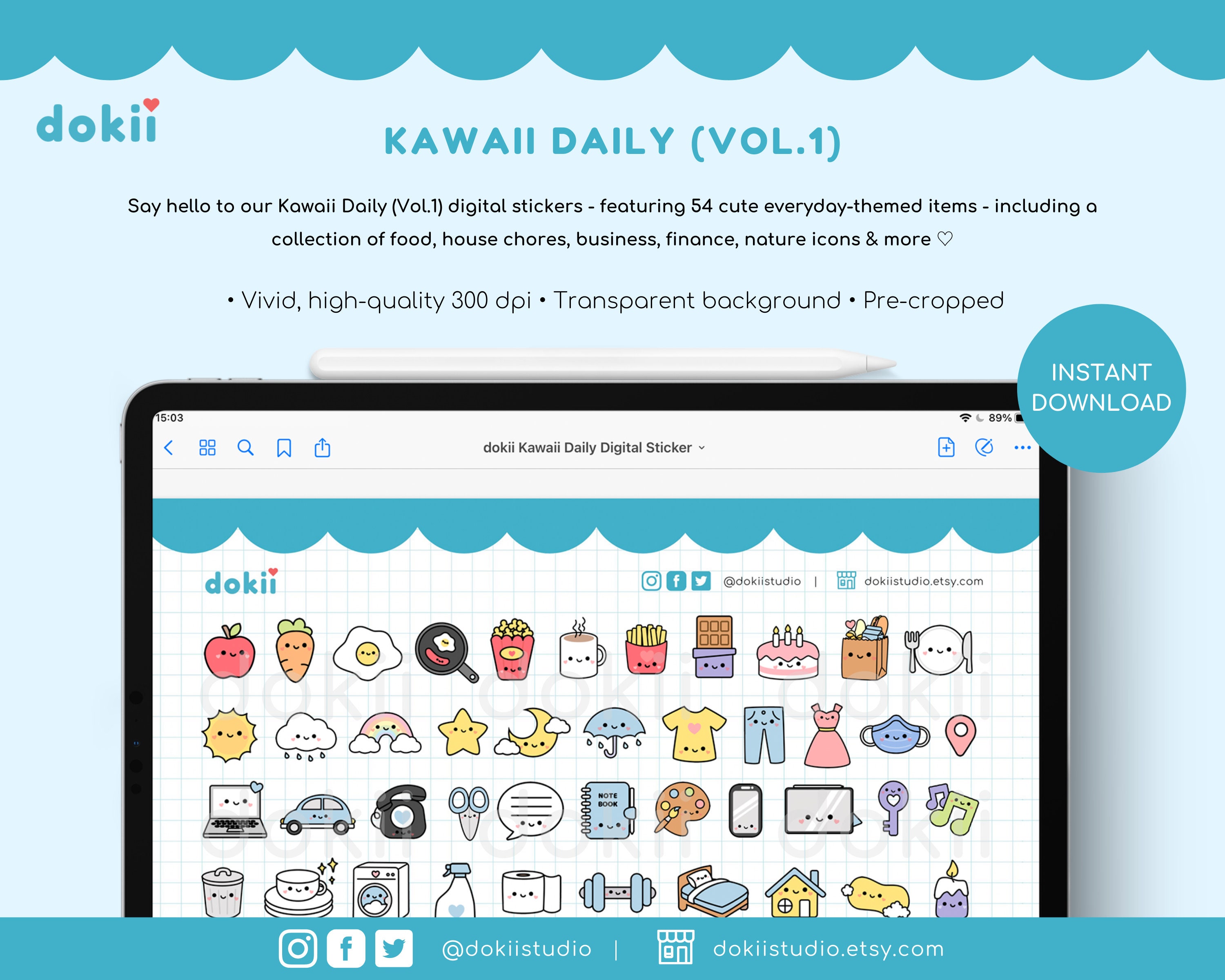 Buy Kawaii Daily Digital Sticker Bundle Vol 1 54 Cute Online In India Etsy